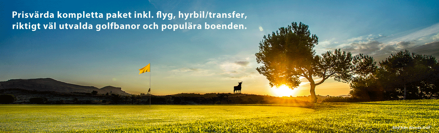 Spanien erbjuder ett enormt utbud av kvalitativa golfbanor, eleganta hotell, fräsha lägenheter och trevliga orter. Med andra ord finns det destinationer och paket som passar de flesta önskemål. Våra kompletta paket inkluderar alltid direktflyg t/r inkl. väska och golfbag ombord, hyrbil med fria mil och full försäkring samt utvalda boende och golfbanor.